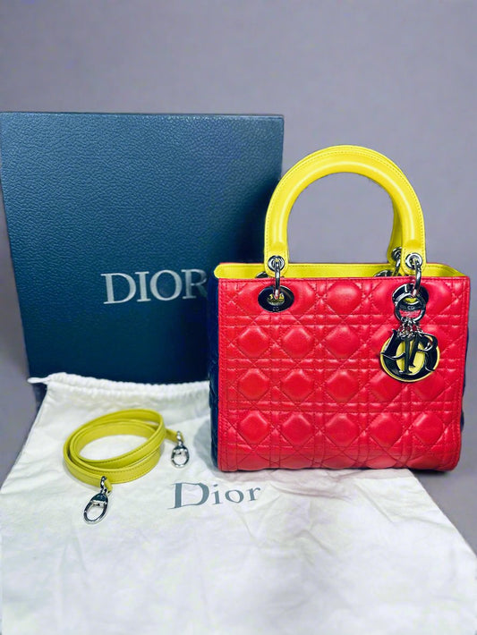 Christian Dior Tri-Color Quilted Lambskin Medium Lady Dior
