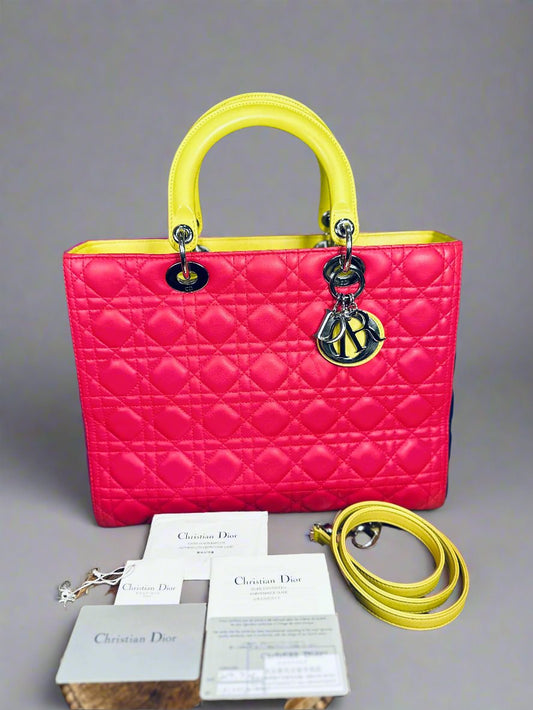 Christian Dior Tri-Color Quilted Lambskin Large Lady Dior
